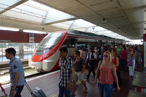 Javni prijevoz je prilično čest te u prosjeku svakih 5 minuta voze linije metroa. Metroi su priča za sebe, sve je potpuno živo. Ono što upada u oči, tj. uši je galama u metroima. Katalonci stvarno vole glasno pričat'. Imaju prilično kreštave glasove, te početne trenutke, kad vam idu totalno na živce postepeno zamjenjuju trenuci kad vam idu malo na živce do trenutaka kad vam uopće ne idu na živce.