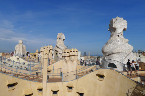 Ovi dimnjaci su postali Gaudijev zaštitni znak. Najneobičnija inovacija na kući je ova strma i uska kapa od šarenih pločica koja predstavljaju kralježnicu i ljusku zmaja.